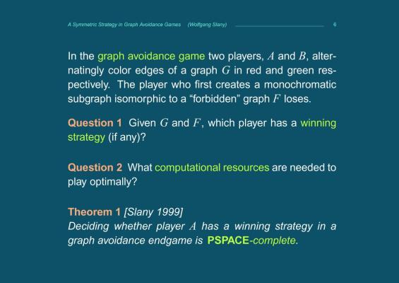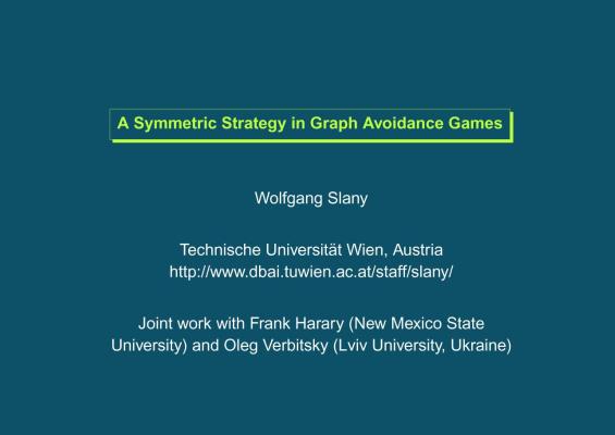 104-12788-A_symmetric_strategy_in_graph_avoidance_games-Frank_Harary__Wolfgang_Slany__Oleg_Verbitsky.mp4