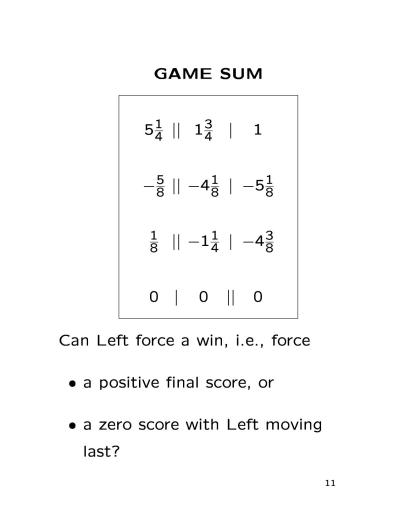 Combinatorial Game Theory Research Workshop July 24, 2000 - July 28, 2000