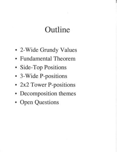 Combinatorial Game Theory Research Workshop July 24, 2000 - July 28, 2000