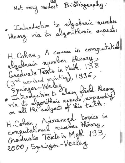 Clay Mathematics Institute Introductory Workshop in Algorithmic Number Theory August 14, 2000 - August 23, 2000