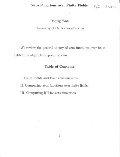 26-368-Zeta Functions over Finite Fields-Daqing Wan