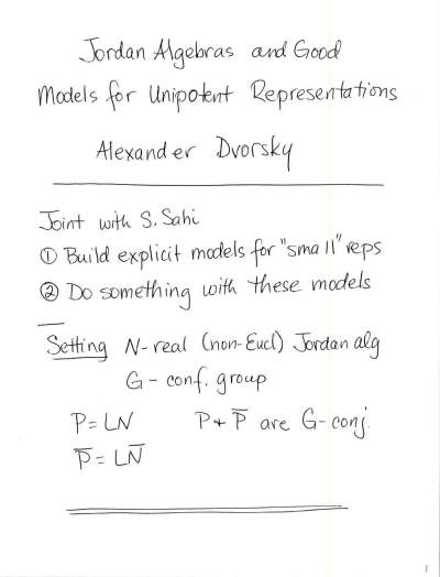 37-429-Jordan algebras and good models for unipotent representations-Alexander Dvorsky