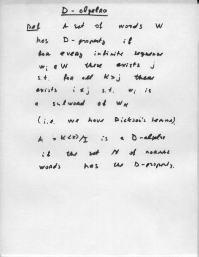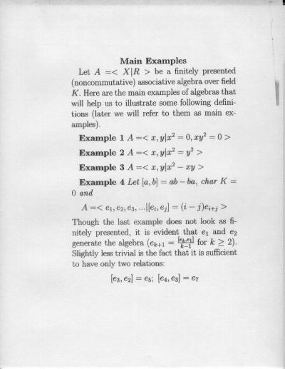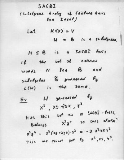 Combinatorial Algebra January 10, 2000 - January 14, 2000