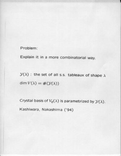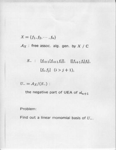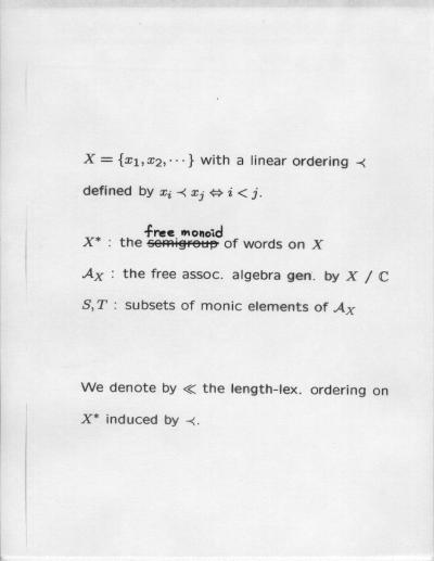 Combinatorial Algebra January 10, 2000 - January 14, 2000