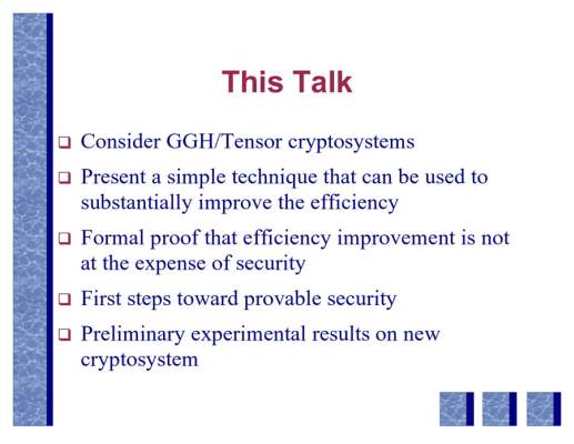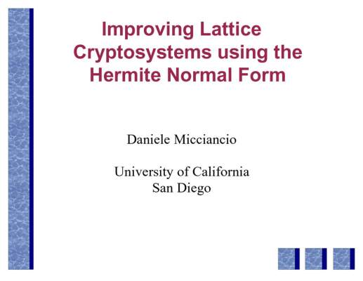 5-108-Improving_lattice_based_cryptosystems_using_the_Hermite_Normal_Form-Daniele_Micciancio.mp4