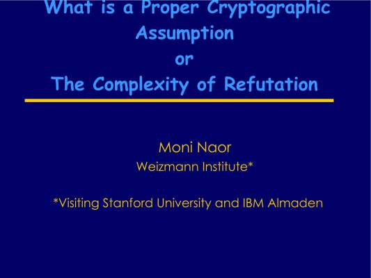5-25303-What_is_a_proper_cryptographic_assumption__or_The_complexity_of_refutation-Moni_Naor.mp4