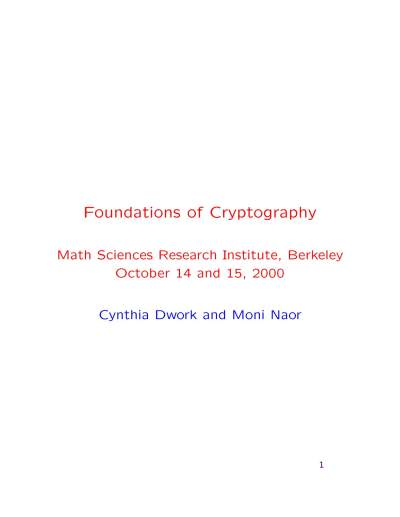 5-91-Short Course on Foundations of Cryptography: Foundations of Cryptography-Cynthia Dwork