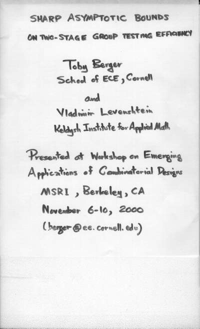 6-126-Sharp asymptotic bounds on two-stage group testing efficiency-Toby Berger