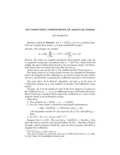 8-187-On computing coefficients of eigenforms.-Bas Edixhoven