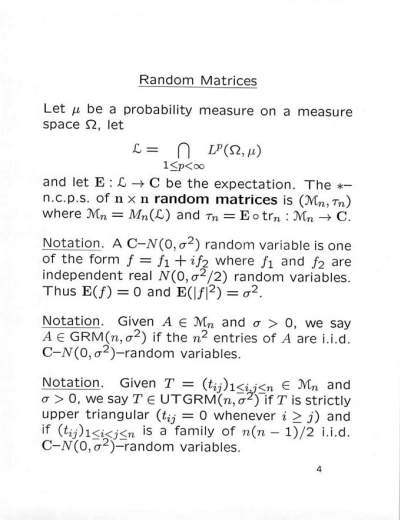 Free Probability and Non-commutative Banach Spaces January 22, 2001 - January 27, 2001