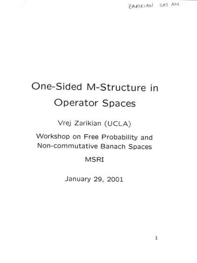 Free Probability and Non-commutative Banach Spaces January 22, 2001 - January 27, 2001